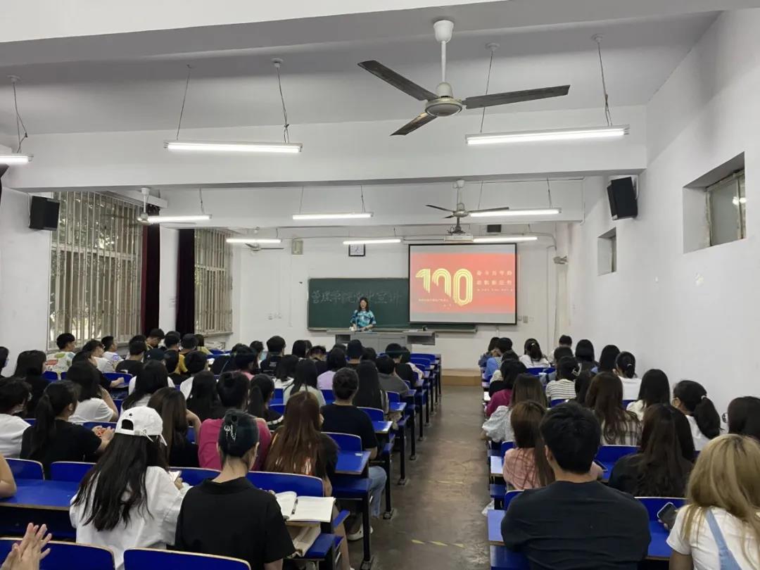 团委实践部部长李云宵带领同学们从建立中国共产党、没有共产党就没有新中国、没有共产党就没有社会主义中国、没有共产党就没有中国特色社会主义以及党的100年光辉历程给我们的深刻启示五方面进行了党史的学习,回顾了中国共产党团结带领中国人民实现中华民族伟大复兴走过的百年光辉历程。