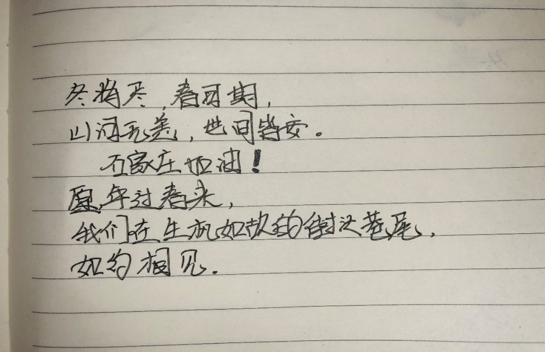 和 我在同一岗位,不同时间、不同地点工作的志愿者坚守在各自岗位,不同工作岗位,的志愿者也在各处发光发热,我做了一名学生力所能及的事,同时也尽到身为中共党员的一份责任。奋斗在一线的医生、警察等等,他们所要面对困难的远比我们青年志愿者更多,他们的默默守护,负重前行更加值得赞扬。所有奋斗在一线的工作人员,共同抒写了这可歌可泣的抗疫篇章,相信在大家共同的努力之下,终将彻底战胜新冠疫情!