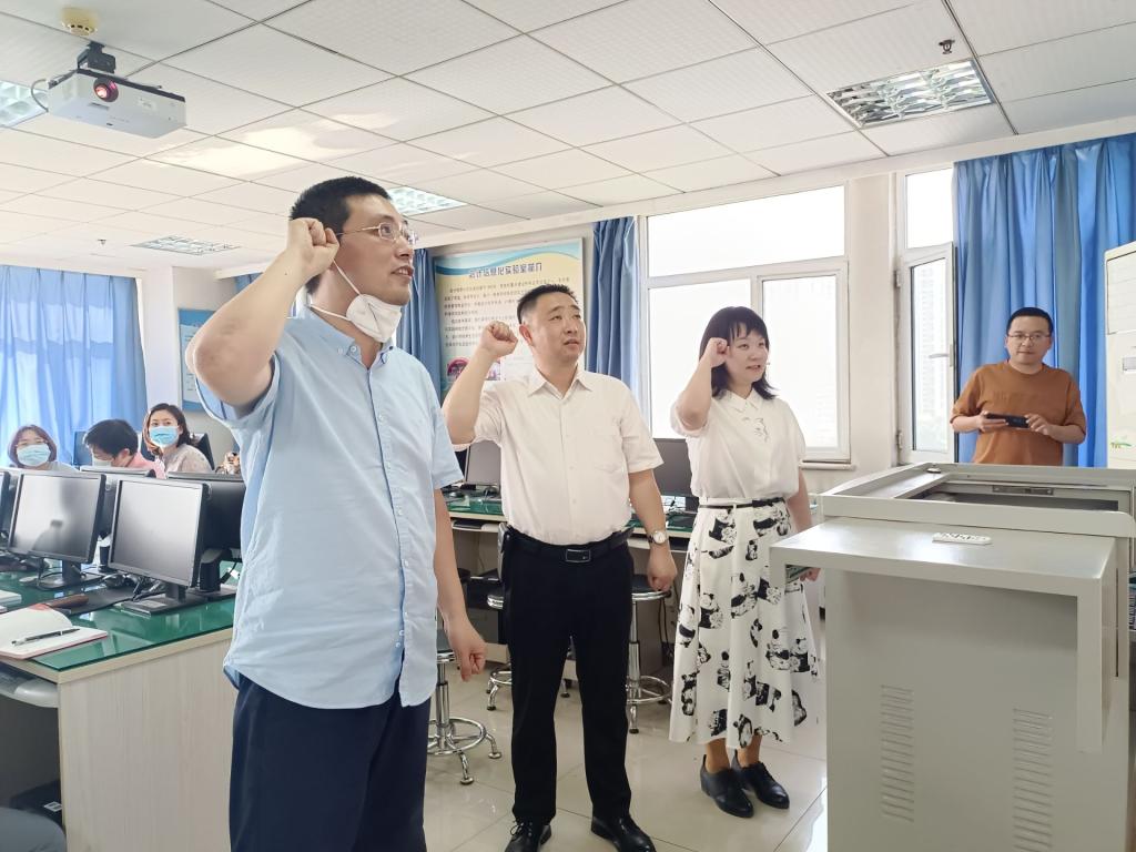 财会系教师党支部开展了学习贯彻习近平新时代中国特色社会主义思想主题教育学习会暨新党员入党宣誓活动。会议由财会系党支部书记邓兴平主持。