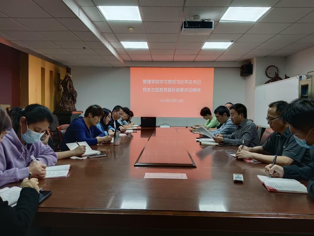会后,学院各党支部在各自教研室,开展了学习贯彻习近平总书记有关主题教育最新讲话精神的集中学习,全体师生党员参加了学习,各党支部书记传达了学校主题教育领导小组办公室《关于深入学习贯彻习近平总书记有关主题教育最新重要讲话精神的通知》精神,并领学了以上学习内容。