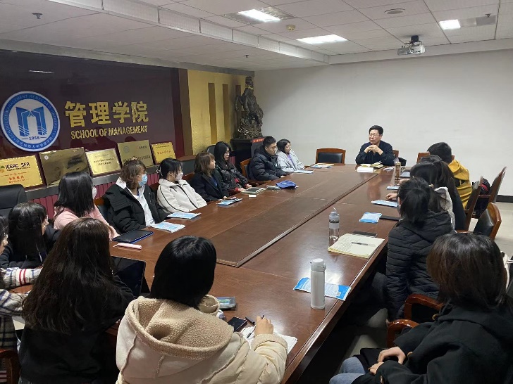研究生班班长胡守峰主持,管理学硕全体成员参加。