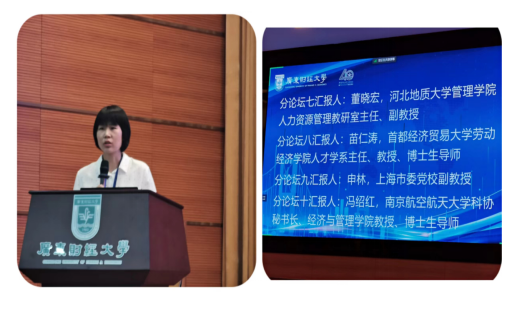 郭爱英老师入选了全国人力资源学科课程教材评价中心专家委员会名单并主持了“人才评价与开发”分论坛,就科技人才、技术人才、创新人才的评价及开发与参会嘉宾做了交流。董晓宏老师在第七分论坛做了“数智人资背景下地方院校人力资源管理专业学生就业能力调查研究”的主题发言,介绍了地方院校如何通过调整培养目标与人才培养模式以满足数字化、智能化技术融入人力资源管理工作后对从业者所提出的新的要求,汇报内容得到了与会专家的认可与共鸣。