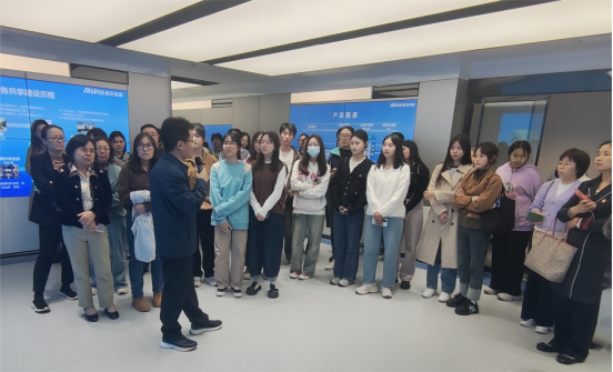 步淑段教授、周雯珺教授等12位财会系教师、2023级会计专硕与2021级和2022级财务管理本科生赴航信云享科技有限公司(以下简称“云享科技”)进行参观学习,引导学生加强对企业财税数字化转型实践应用的理解。
