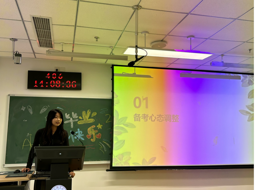 分享会上,各位“准研究生”结合自身经历,从考研目标确立、院校专业选择、备考时间规划、复习心态调整等多个方面展开分享。