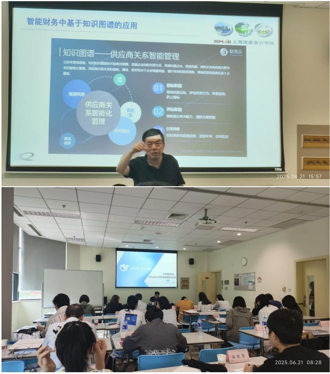 本次研修培训中,上海国家会计学院智能财务研究院院长刘勤教授从理论高度分析了人工智能应用对财务领域的影响;上海国家会计学院刘梅玲副教授站在财务与技术沟通者的角度阐述了人工智能大模型与DeepSeek在财务领域的应用;用友集团AI算法高级专家付立波从底层逻辑角度对大模型与智能体的核心技术及财务领域应用进行了深度解析;上海国家会计学院智能财务研究院联席院长金源教授站在实务角度对DeepSeek在财务管理融合创新方面进行了深入剖析。
