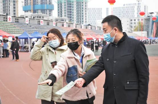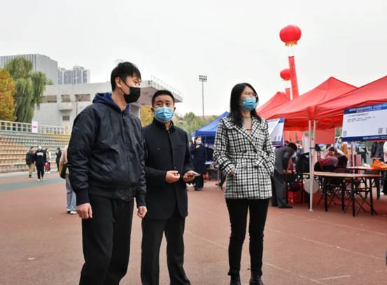 党委书记袁志忠、党委副书记初汉芳、毕业生辅导员周峰老师和张建兰老师亲临招聘会现场对线上av