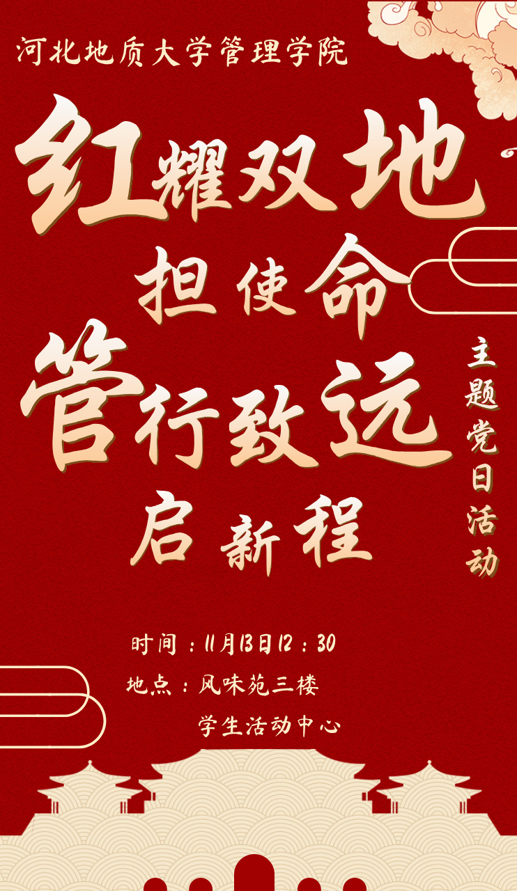 党委将于2025年11月13日举办“红耀双地担使命 管行致远启新程”主题党日活动。